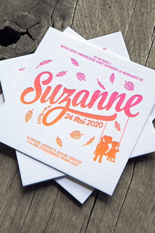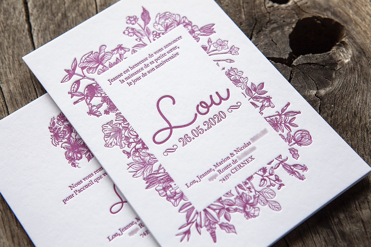 Ce retour à l’artisanat et au travail dit « à façon » permet alors un choix de finitions haut-de-gamme néanmoins compatibles à la petite série de tirages d’exception, avec une sélection parmi des papiers de création et supports de qualités, des dorures à chaud aux effets variés, des motifs ou lettrages en creux ou en « bosse » (on parle alors de gaufrage) et bien plus encore… Tout cela dans le but de donner vie à des imprimés mémorables : des faire-part de mariage ou de naissance, des cartes de vœux, des invitations, des cartes de visite ou encore de la papeterie d’entreprise…